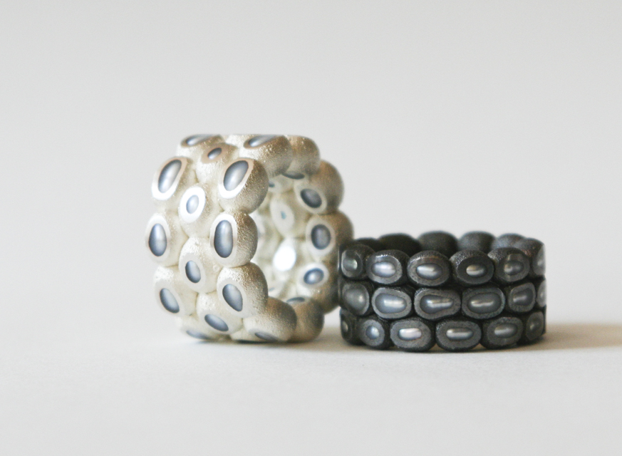 Proposant une vision particulièrement novatrice de la bijouterie, Ambroise Degenève détourne les techniques ancestrales avec une grande maîtrise, tout en intégrant sans cesse de nouveaux matériaux. Il dissimule des pierres précieuses synthétiques dans des anneaux bruts, mélange avec audace la perle de culture et l’argent, qu’il rend rugueux et dépourvu de brillance par sa patine. Le bijou contemporain devient ainsi un terrain de jeu, où l’artisan se joue de l’échelle de valeur des matériaux et réinvente les codes classiques du métier. Ce dialogue entre la perle, symbole de délicatesse, et des matériaux plus bruts, incarne parfaitement l’esprit audacieux du créateur.