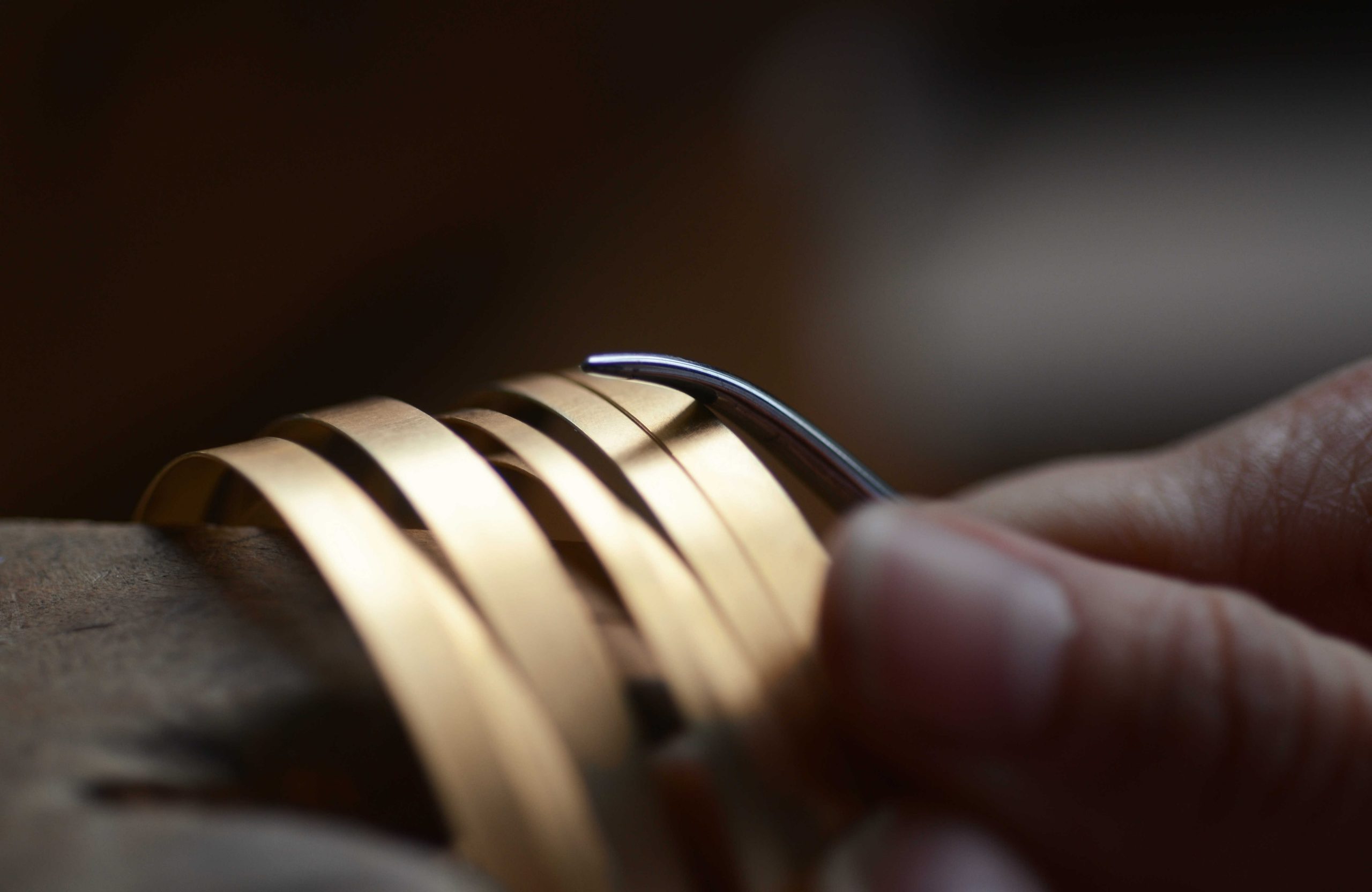Claudia Hoppe est designer. Elle vit et travaille à Düsseldorf. Ses bijoux rappellent l’architecture de nos grandes métropoles. Elle part des propriétés techniques des métaux nobles pour donner corps à ses créations. Des bracelets sans fermoir mais non sans émotion accompagne le mouvement au quotidien.