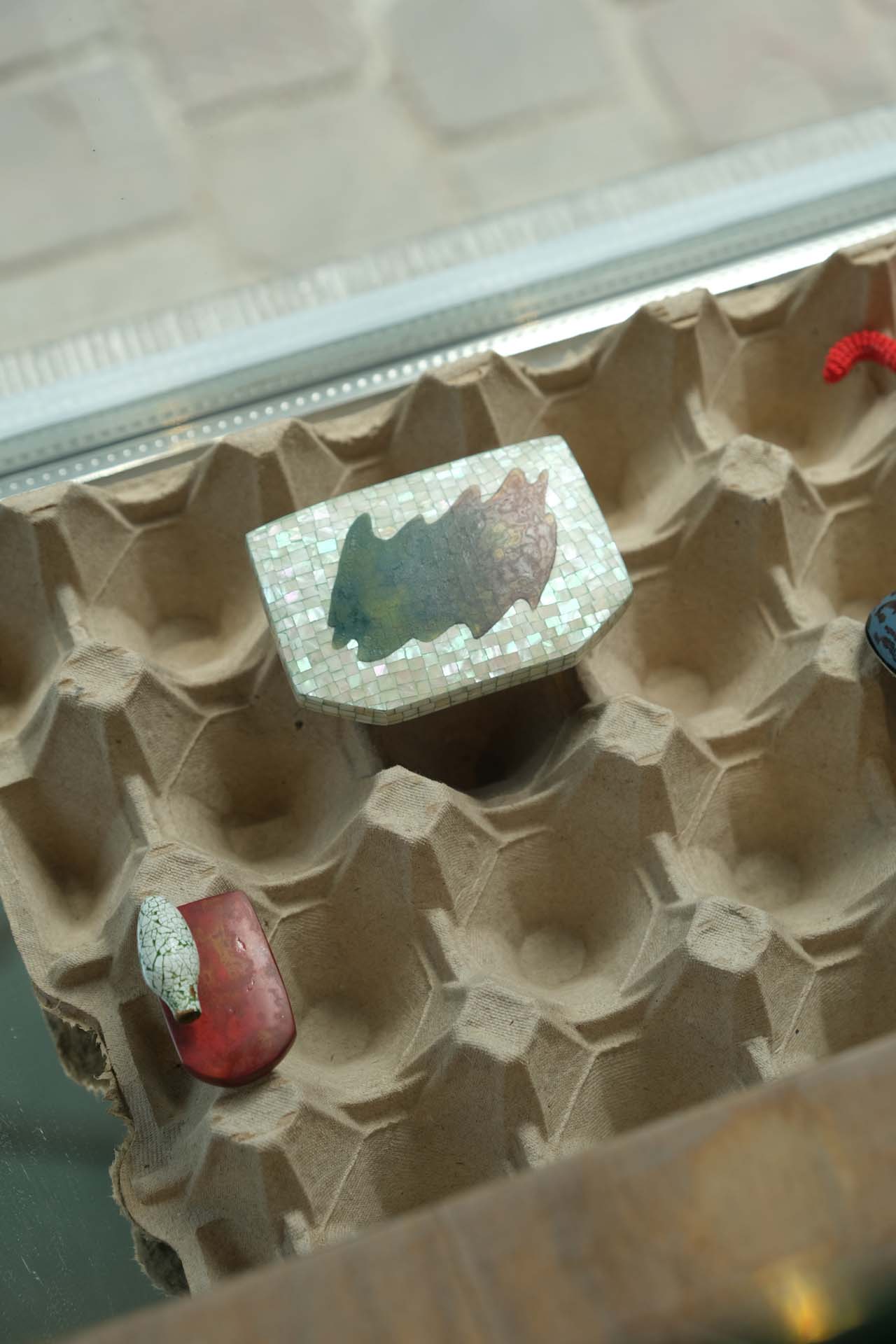 Le travail de Felieke van der Leest déploie un univers joyeux et débridé où les animaux se transforment en personnages hauts en couleur. Elle combine crochet, textile, métaux précieux et jouets en plastique pour créer des figures hybrides, ludiques et expressives. Entre humour, narration et délicatesse, ses bijoux abordent aussi des thèmes plus graves comme l’environnement ou notre relation au vivant. Chaque pièce devient un petit théâtre où l’enfance, le jeu et la critique sociale s’entrelacent avec finesse.