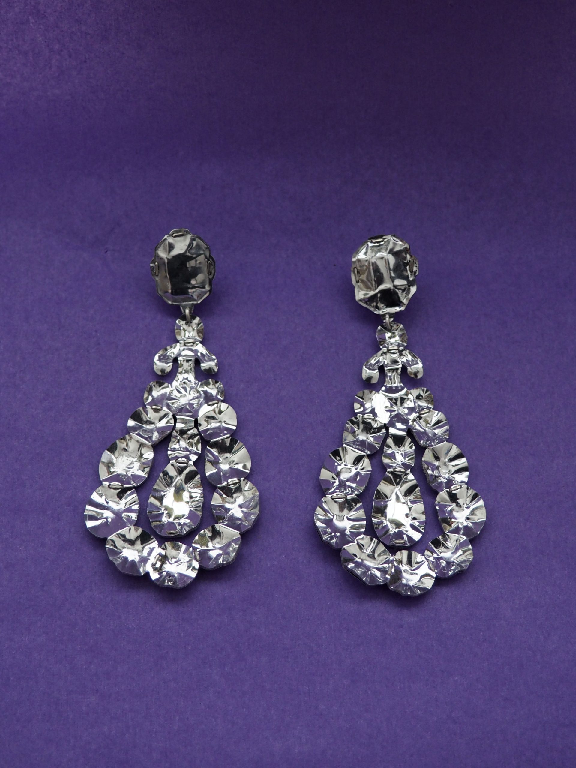 Techniquement, Juliette Même emploie des savoir-faire issus de la bijouterie traditionnelle pour magnifier son matériau. Elle utilise le sertissage et la ciselure pour imiter les pierres précieuses et les ornements d’apparat. Chaque détail est minutieusement travaillé pour transformer l’aluminium en un élément de parure raffiné. Son aspect, poli et brillant, capte la lumière tout en conservant une légèreté remarquable, même pour des bijoux aux dimensions importantes.