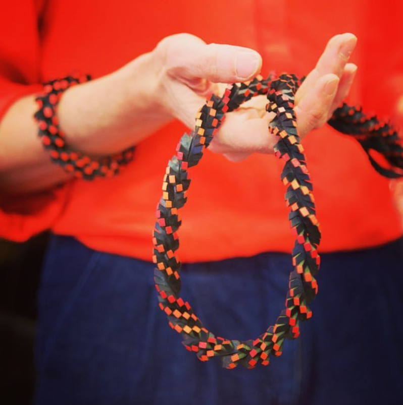 Tania Clark Hall est londonienne. Elle revisite le travail du cuir. De son atelier, de ses mains, sortent des bijoux légers, odorant le cuir comme autrefois mais résolument inscrits dans notre époque. A la croisée des cultures, elle trace une ligne, colorée et forte.
