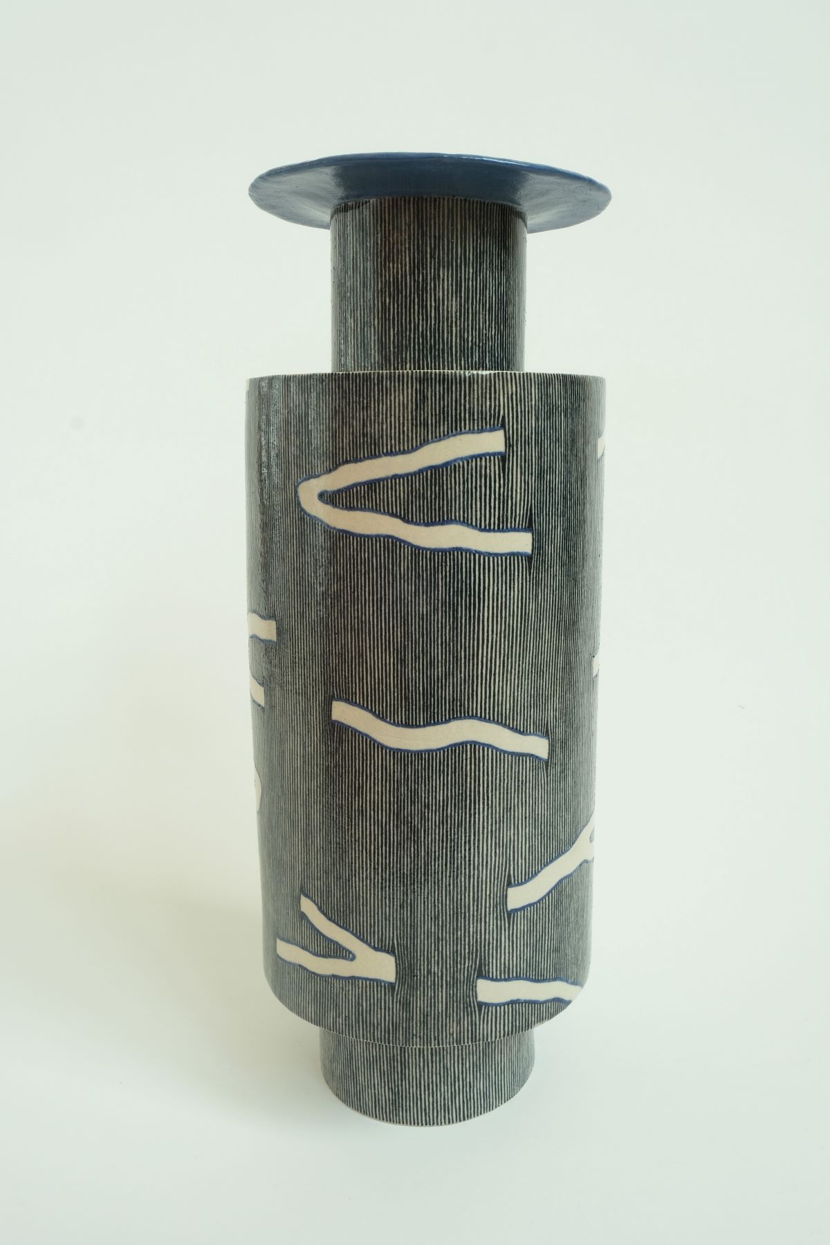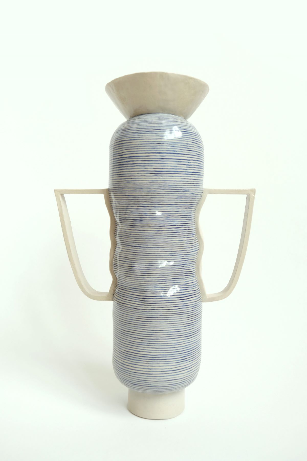 Vincent Doreau studied cartooning at the ESA Saint-Luc and has just completed a second degree in ceramics at the Beaux-Arts Academy in St-Gilles. We were seduced by his series of amphoras, which take us back in time by boldly reinterpreting shapes and codes from different eras of design and craft. He allows himself to mix disciplines, meticulously decorating his pieces with motifs in the manner of a textile designer or illustrator.