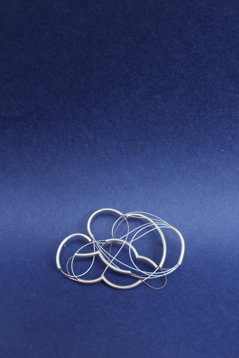 Des lignes pures, proche du dessin, inspirées de la nature, de la mémoire, du temps qui passe. L’artiste déclines ces thèmes en bague, broche ou pendentif.